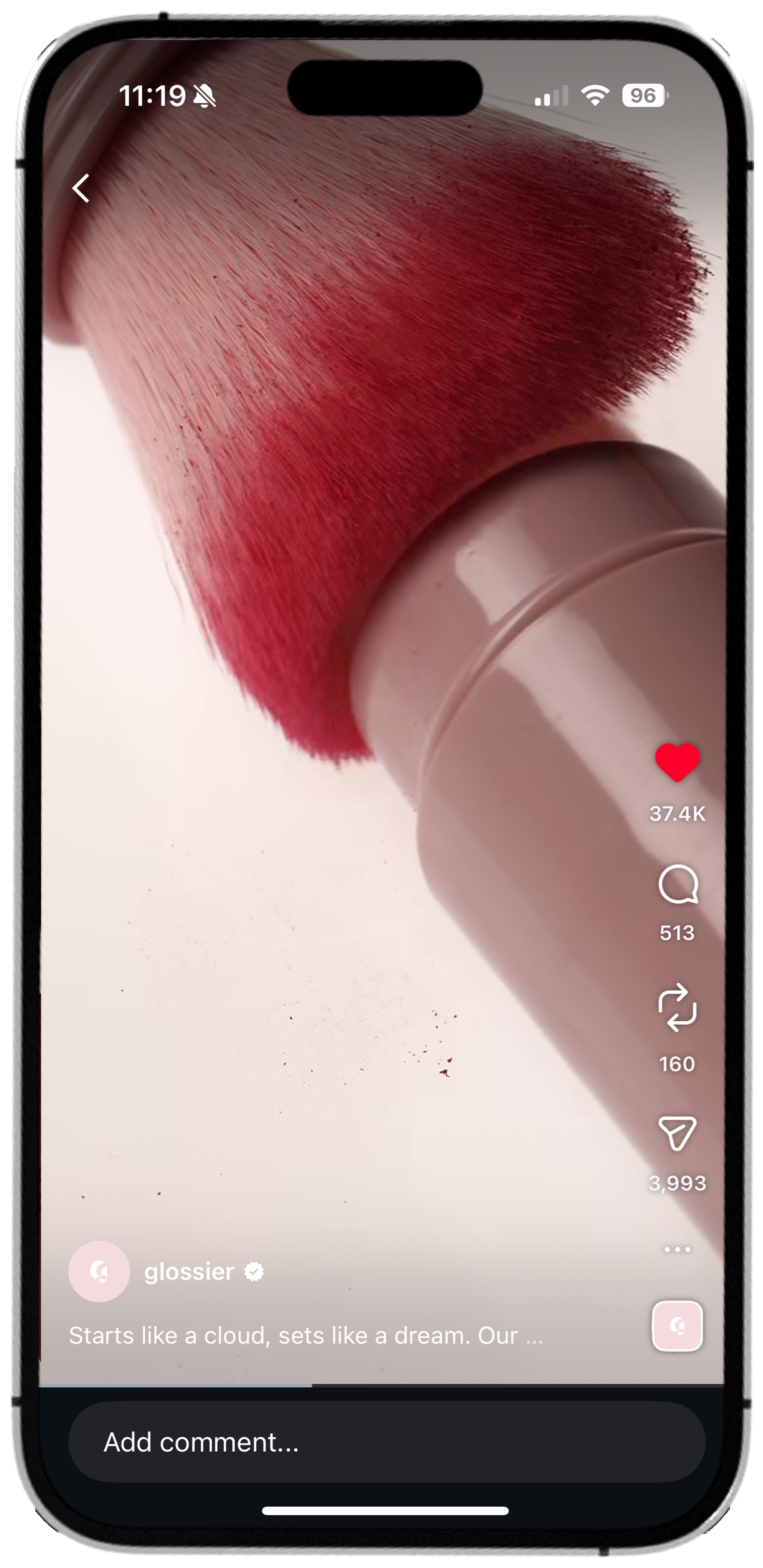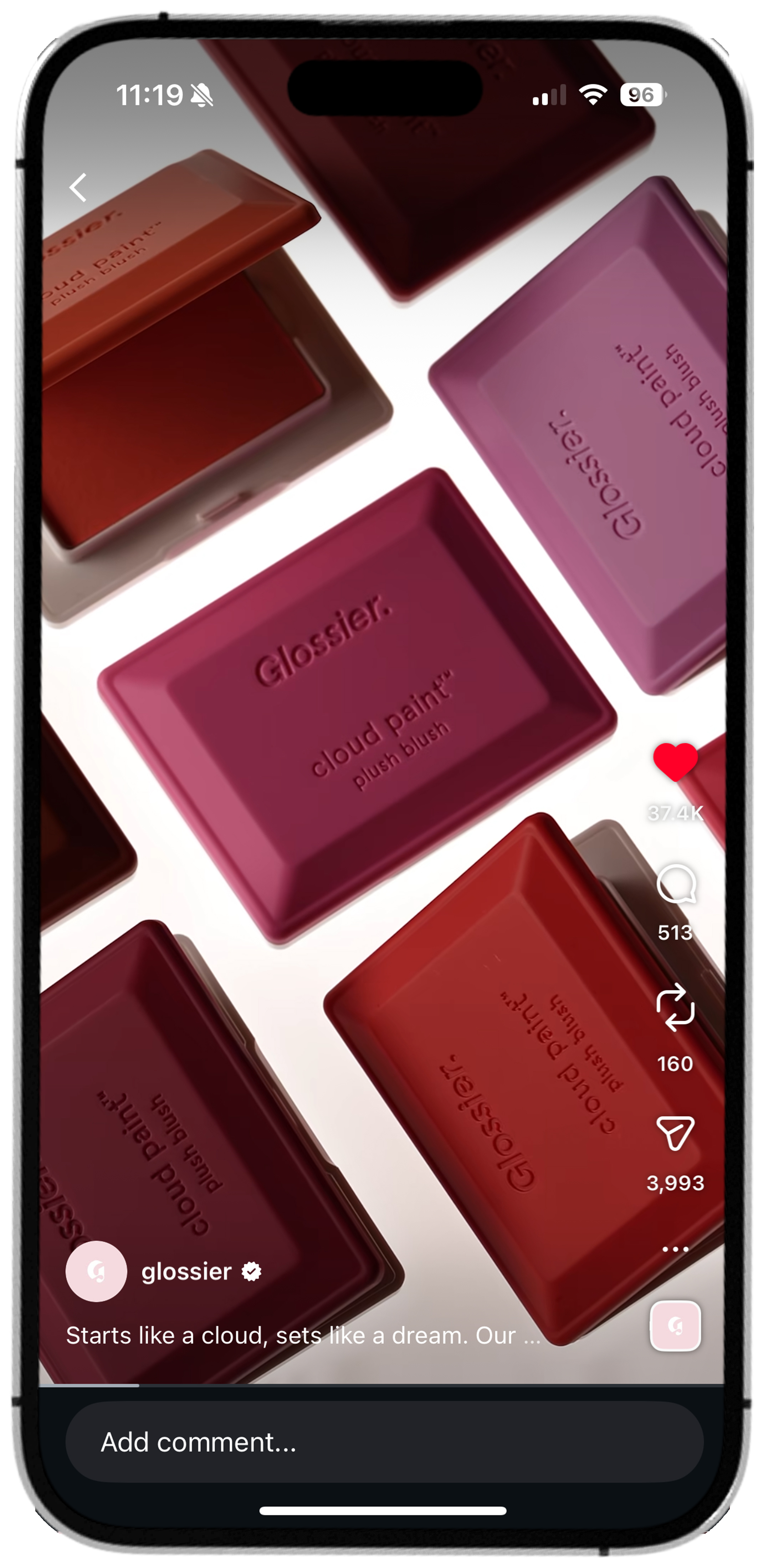 The product lends itself well to textural exploration, as well as the accompanying dual ended brush, with its audible, oddly satisfying click and bouncy silicone nub. We commisioned content from an ASMR creator that cut through the blush launch noise.